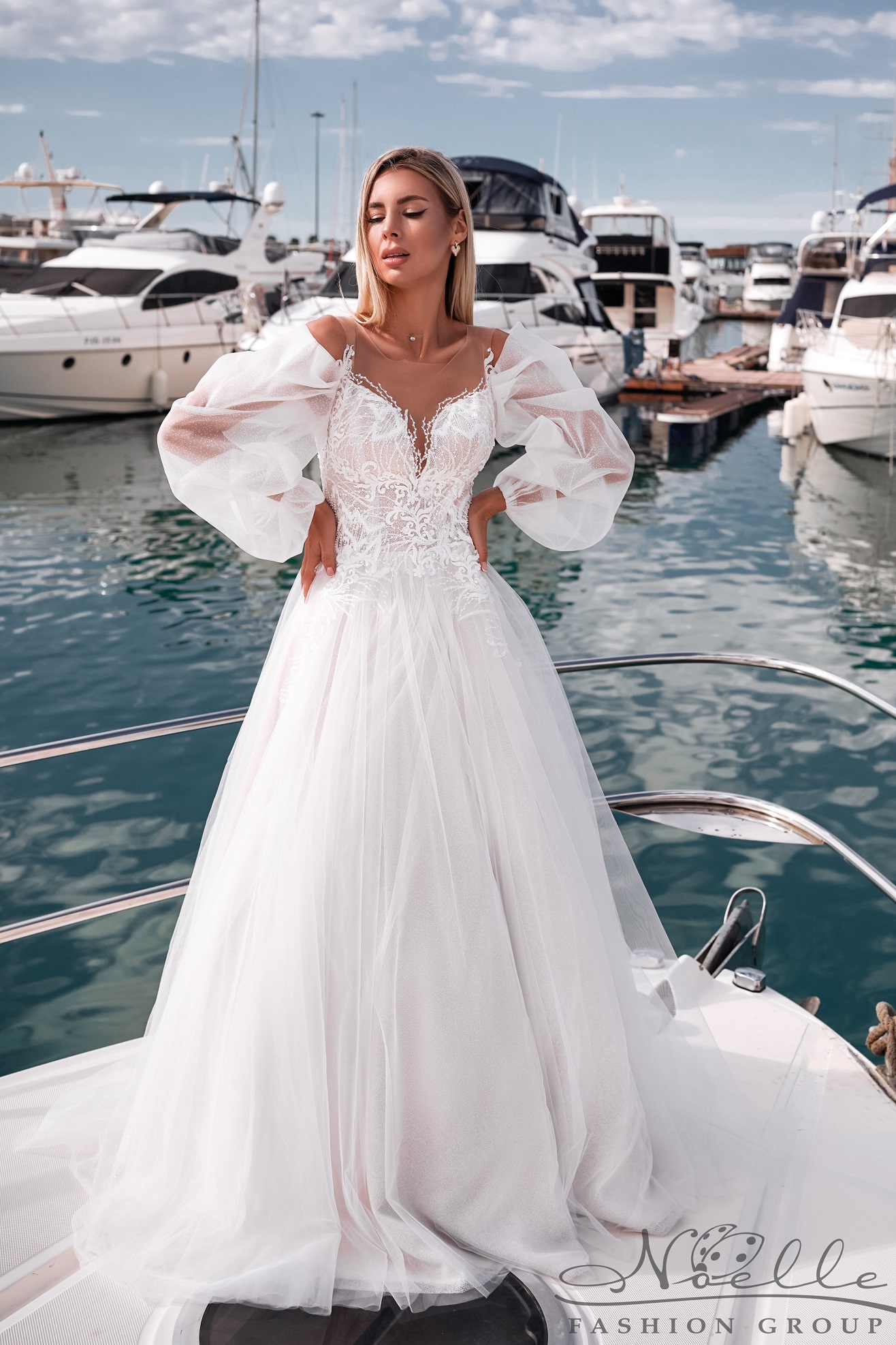Свадебное платье с рукавами пышное с блеском "Клементина"